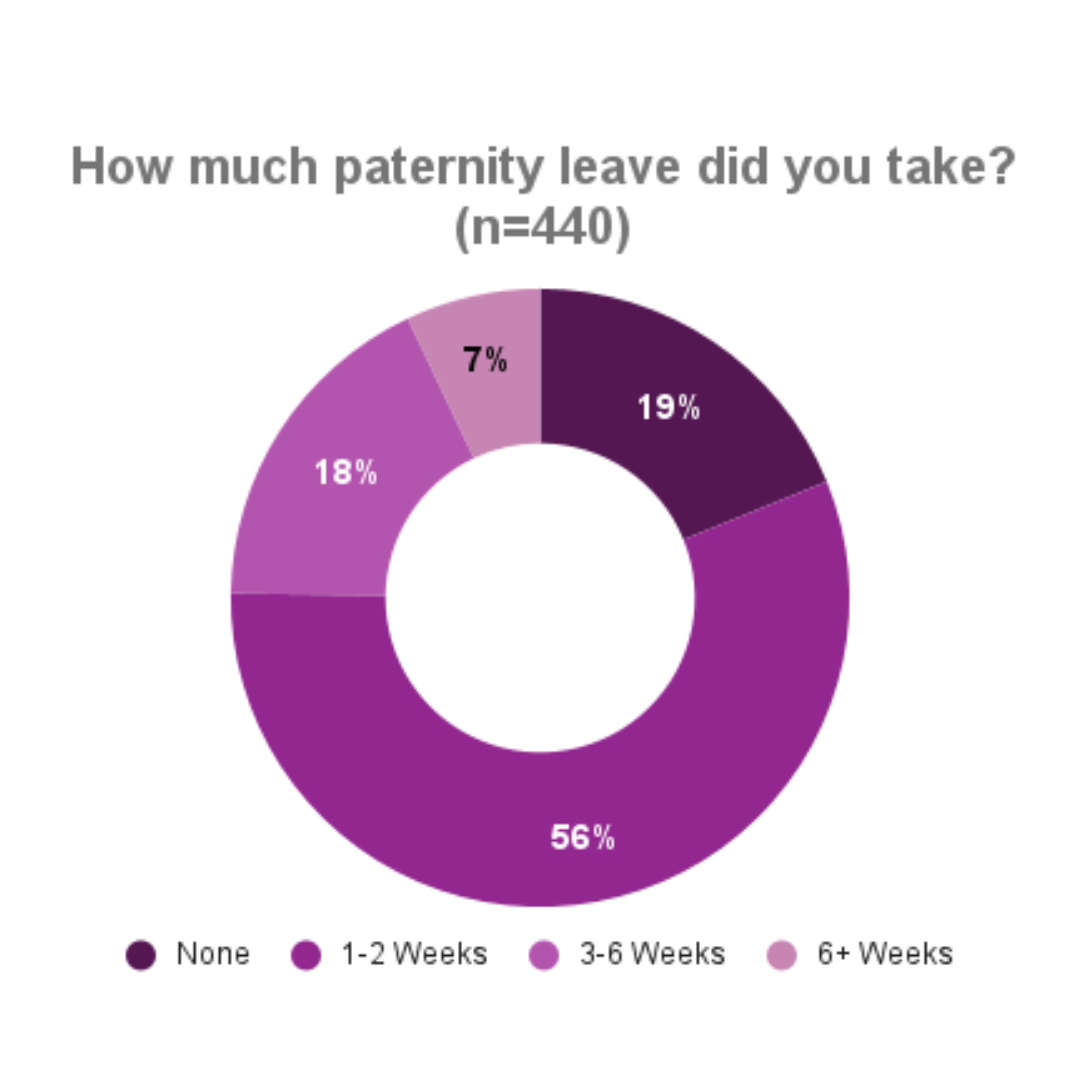 Among the 440 survey responses, three-quarters (75%) of dads reported taking two weeks or less of paternity leave.