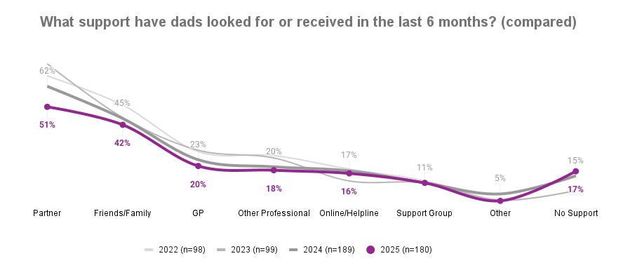 Additionally, almost 1 in 5 dads (17%) whose mental health has deteriorated over the last 6 months has not looked for or received support.