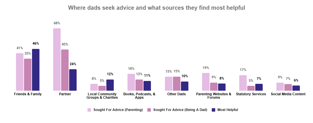 New dads go to their partners first for advice, but often find the most helpful support through friends and family.